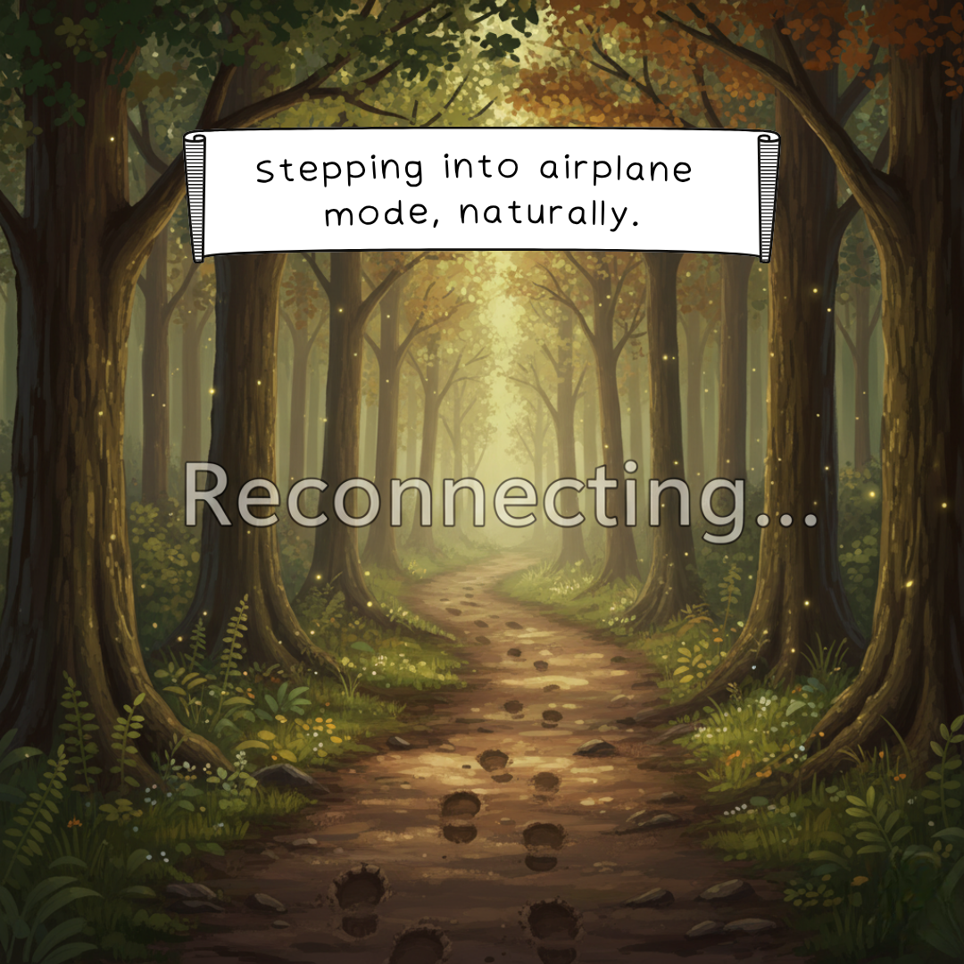 Stick with me. Let’s talk about logging out of the digital world and logging back into the natural one, the kind of connection that never buffers and doesn’t require a password.